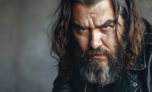 A simple smile had turned a scowling and ominous biker into a big, soft teddy bear.